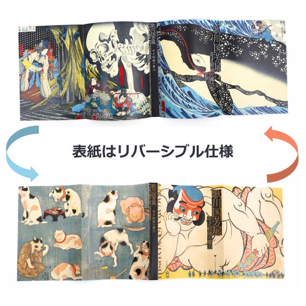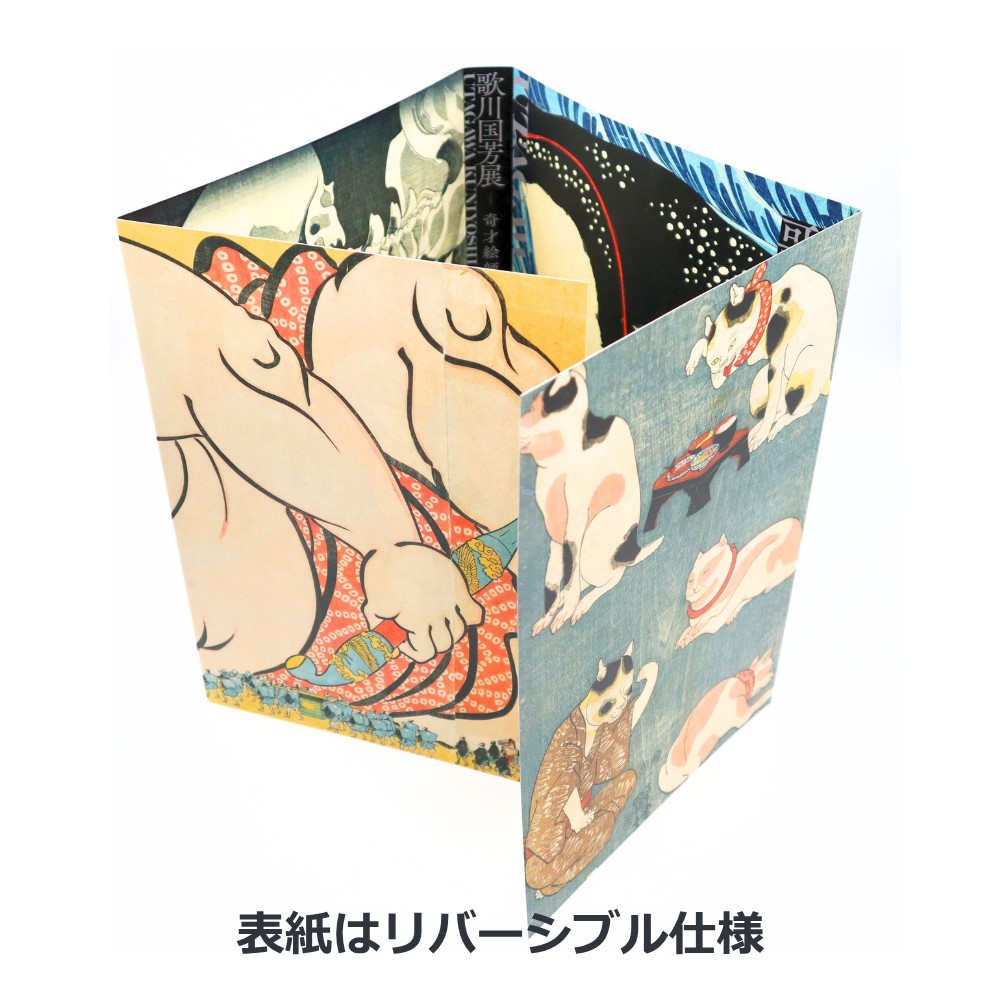 国芳の出世作、躍動感あふれる「武者絵」、猫や金魚を擬人化したユーモアあふれる「戯画」から、「役者絵」「美人画」「風景」「摺物」「肉筆」まで、浮世絵師・歌川国芳が手掛けた幅広いジャンルを網羅。402点全点カラーで紹介する国芳の魅力満載の図録です。《相馬の古内裏》《宮本武蔵の鯨退治》など、国芳の代表作の「3枚続のワイドスクリーン」がはえる、コデックス装。カバーは、リバーシブルです。