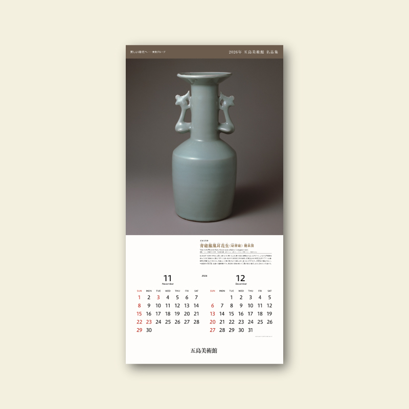 【11-12月】重要文化財 青磁鳳凰耳花生(砧青磁) / 南宋時代・13世紀 五島美術館蔵