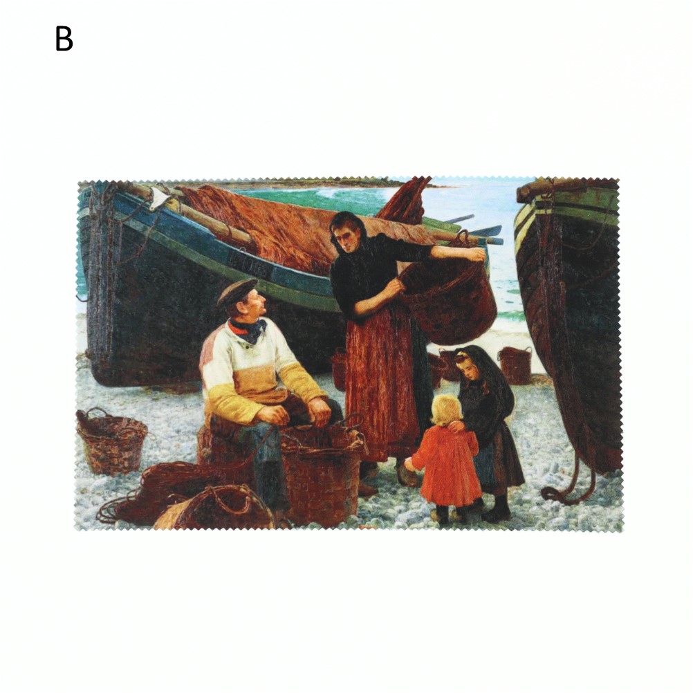 近代の日本洋画に本格的な「写実」表現をもたらした鹿子木孟郎(かのこぎ・たけしろう、1874~1941)の風景画、《山村風景》(岡山県立美術館所蔵) / 《ノルマンディーの浜》(泉屋博古館東京寄託)をマイクロファイバークロスにデザインしました。メガネやカメラのレンズ、スマートフォンの液晶画面などをキレイに保ちます。