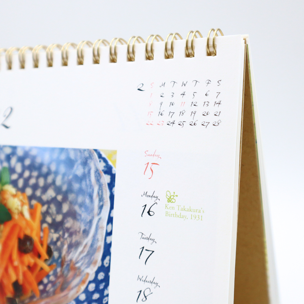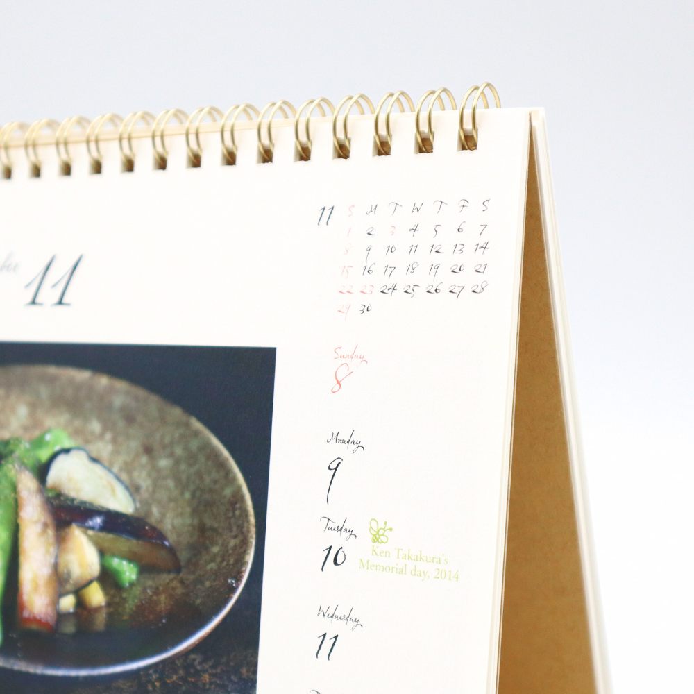 2024年10月に高倉健没後10年企画として発売された書籍「高倉健の愛した食卓」。俳優人生を支えた日々の料理を再現し撮影した写真のなかから、書籍に収録された料理写真のほか、四季折々の草花などで構成された週替わり卓上カレンダー。高倉健の誕生日2月16日、そして命日11月10日は、高倉健が好きだった蜂のモチーフがマークされたKEN’S スペシャルカレンダー。