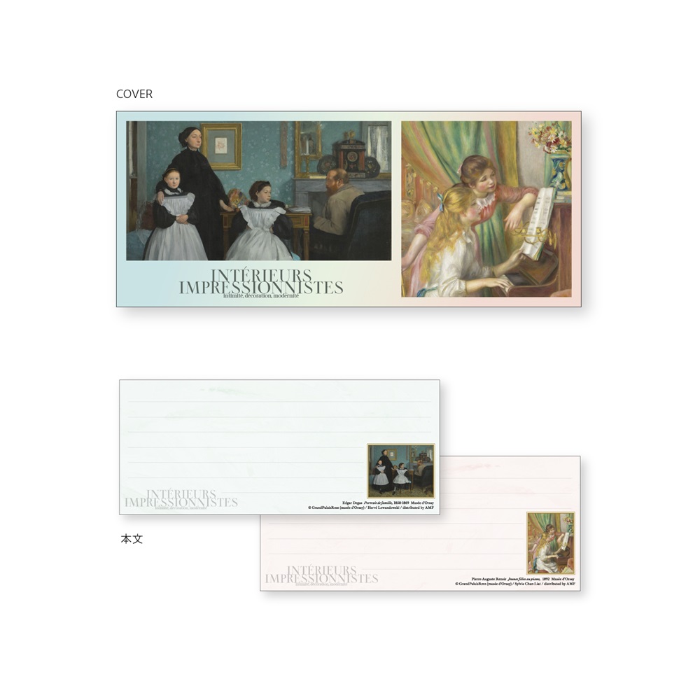2025年10月25日(土)に国立西洋美術館(東京・上野)で開幕する「オルセー美術館所蔵 印象派―室内をめぐる物語」を「堪能」いただけるグッズセットです。展覧会の図録1冊(表紙デザインはエドガー・ドガ《家族の肖像(ベレッリ家)》、イメージ写真参照)と、クリアファイル2種各1点、一筆箋1点を組み合わせました。鑑賞の記念グッズを開幕に先がけてご予約(お届けは11月下旬ごろ)いただける特別なセットです。展覧会のB2ポスター(八つ折り)の特典付きです。