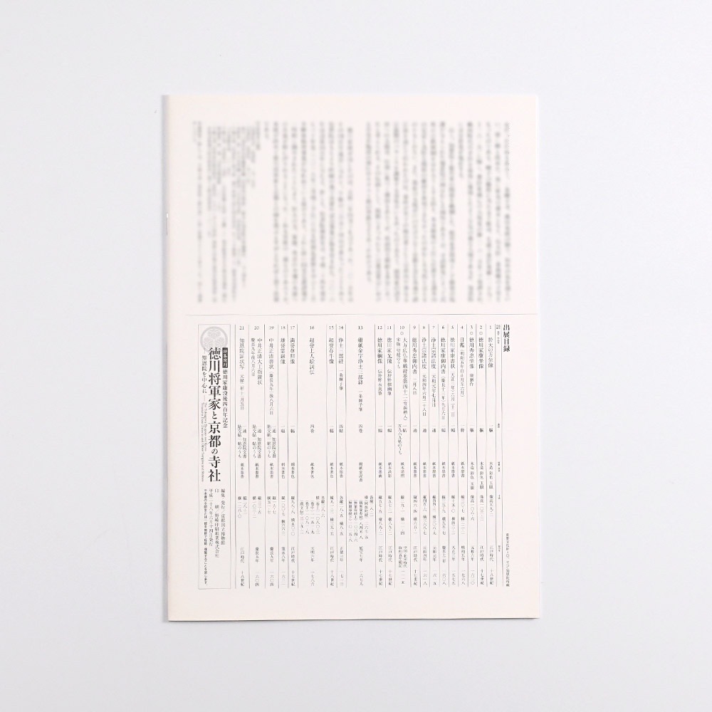 「特集陳列 徳川家康没後四百年記念 徳川将軍家と京都の寺社─知恩院を中心に─」(特別協力 総本山知恩院)図録(2016年6月発行) 出品作品21件 サイズ / ページ数 A4判・中綴じ・総20頁