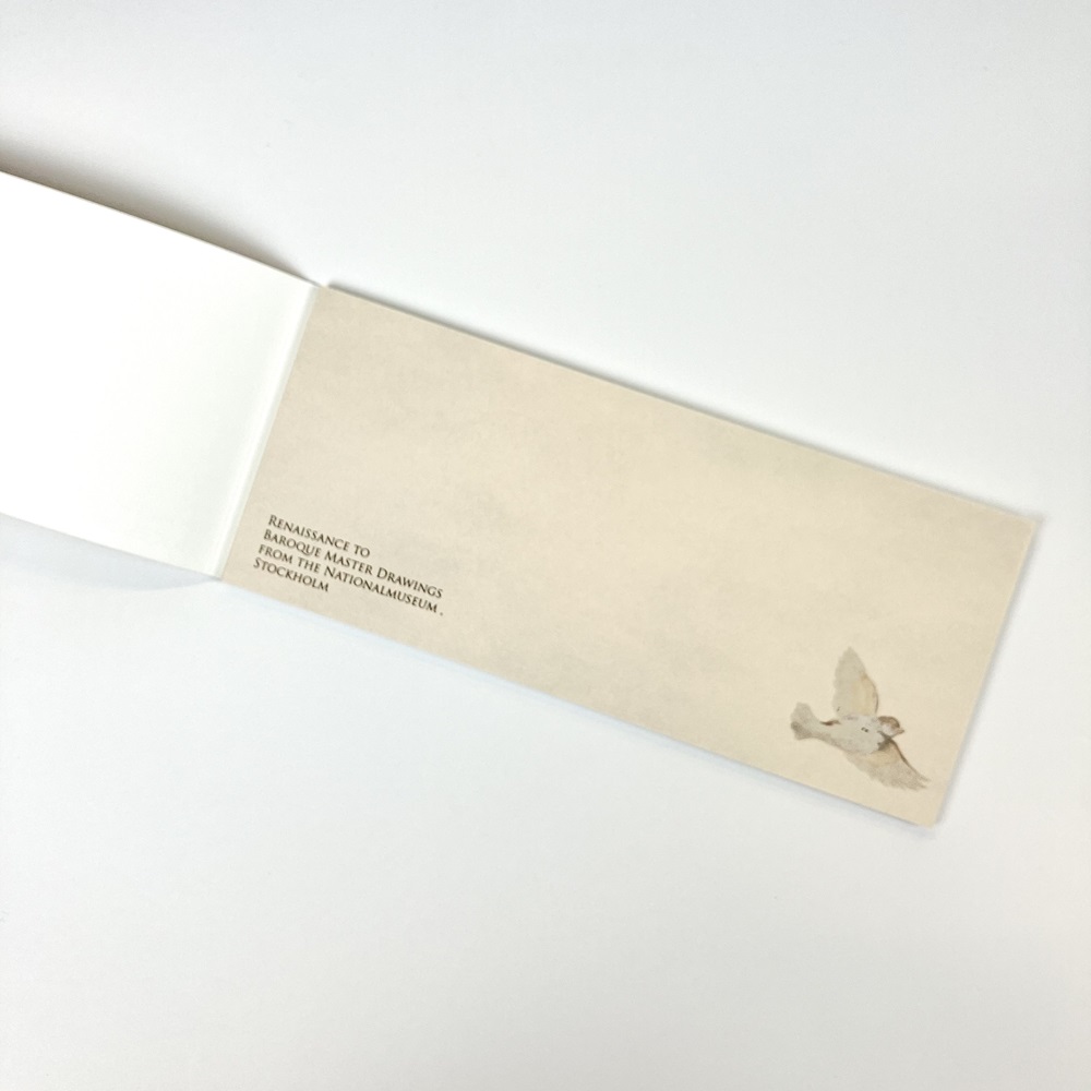 [ 予約販売商品 ] ※本商品を含む注文は11月下旬以降の発送を予定しておりますが、発送時期は前後する場合があります。予めご了承ください。 ※他の商品を同時にご購入された場合、同じタイミングでのお届けとなります。 コルネリス・フィッセル《眠る犬》、ジョヴァンニ・ダ・ウーディネ《空飛ぶ雀》、アブラハム・ブルーマールト《牛の習作》、フランチェスコ・プリマティッチョ周辺《白鳥の騎士》をあしらった一筆箋です。 サイズ H約80mm×W約190mm 素材 紙