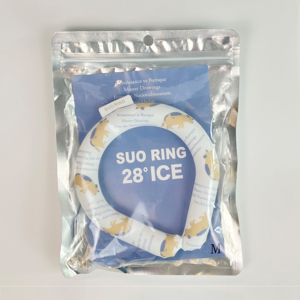 首の付け根を冷やし、身体全体を効果的に冷却するSUO RINGに、コルネリス・フィッセル《眠る犬》をモチーフとした可愛い犬を散りばめました。