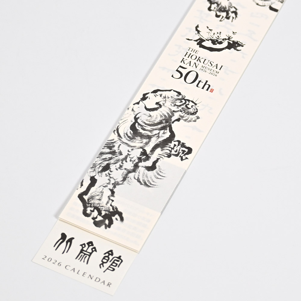 2026年のカレンダーは、北斎が魔除けを願って日々描いた「日新除魔図」を中心に、北斎館の作品で構成しました。最終月の12月には、北斎が最晩年に描いたとされ、北斎館でも人気の高い「富士越龍」を掲載しています。
