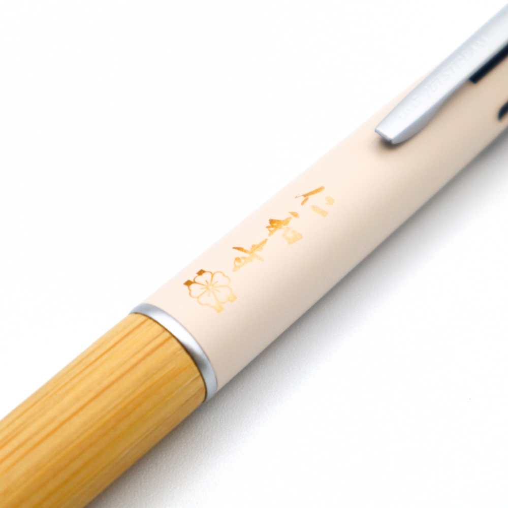 0.5mmのボールペン4色(黒、赤、青、緑)と0.5mmのシャープペンがついています。グリップ部には天然竹材を採用し、上品な風合いと耐久性が特徴です。