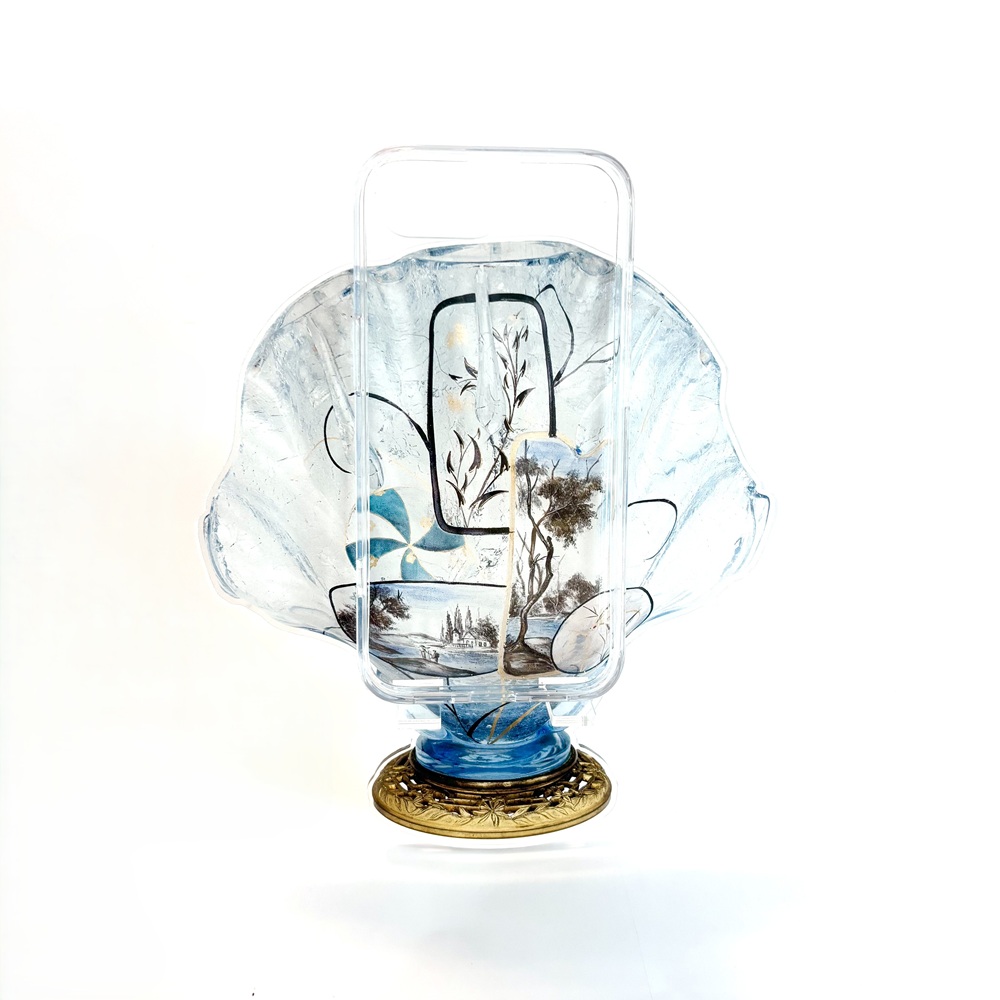 エミール・ガレ《花挿:湖水風景》をモチーフにしたスマホスタンド。作品のやわらかな曲線と湖畔の情景を小さく閉じ込めたような愛らしいデザインです。デスクにそっと置くだけで、アートと過ごすやさしい時間が生まれるアイテムです。