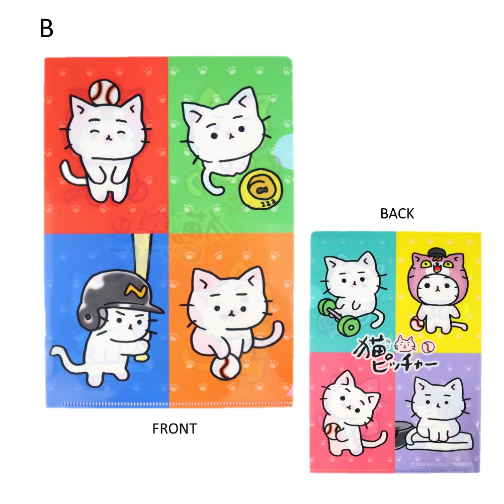 これまでに発売された「猫ピッチャー」単行本の表紙から、選りすぐりのカットを使用したデザインです。ミー太郎の愛らしさはもちろん、赤・青・オレンジといったカラフルな色使いが目を引き、持っているだけで気分も明るくなるアイテムです。